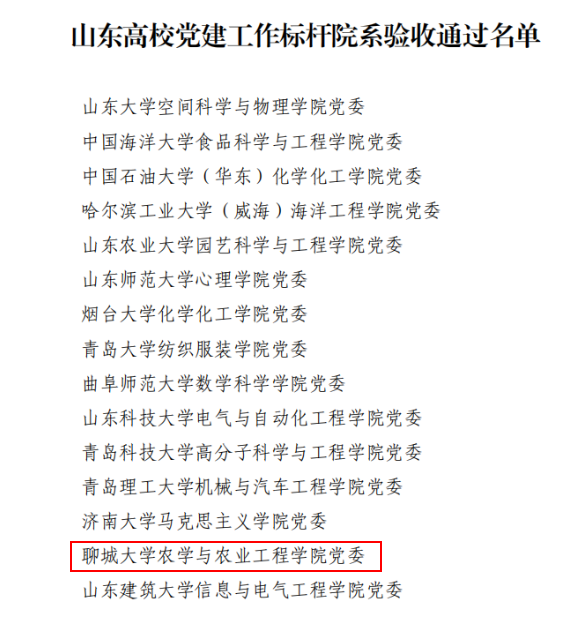 日前,山东省委教育工委公布了第二批山东高公司党建“双创”培育创建工作验收通过名单,beat365亚洲体育官方网站公司党委(原beat365亚洲体育官方网站农学与农业工程公司党委)圆满完成“山东高公司党建工作标杆院系”培育创建任务,通过验收。