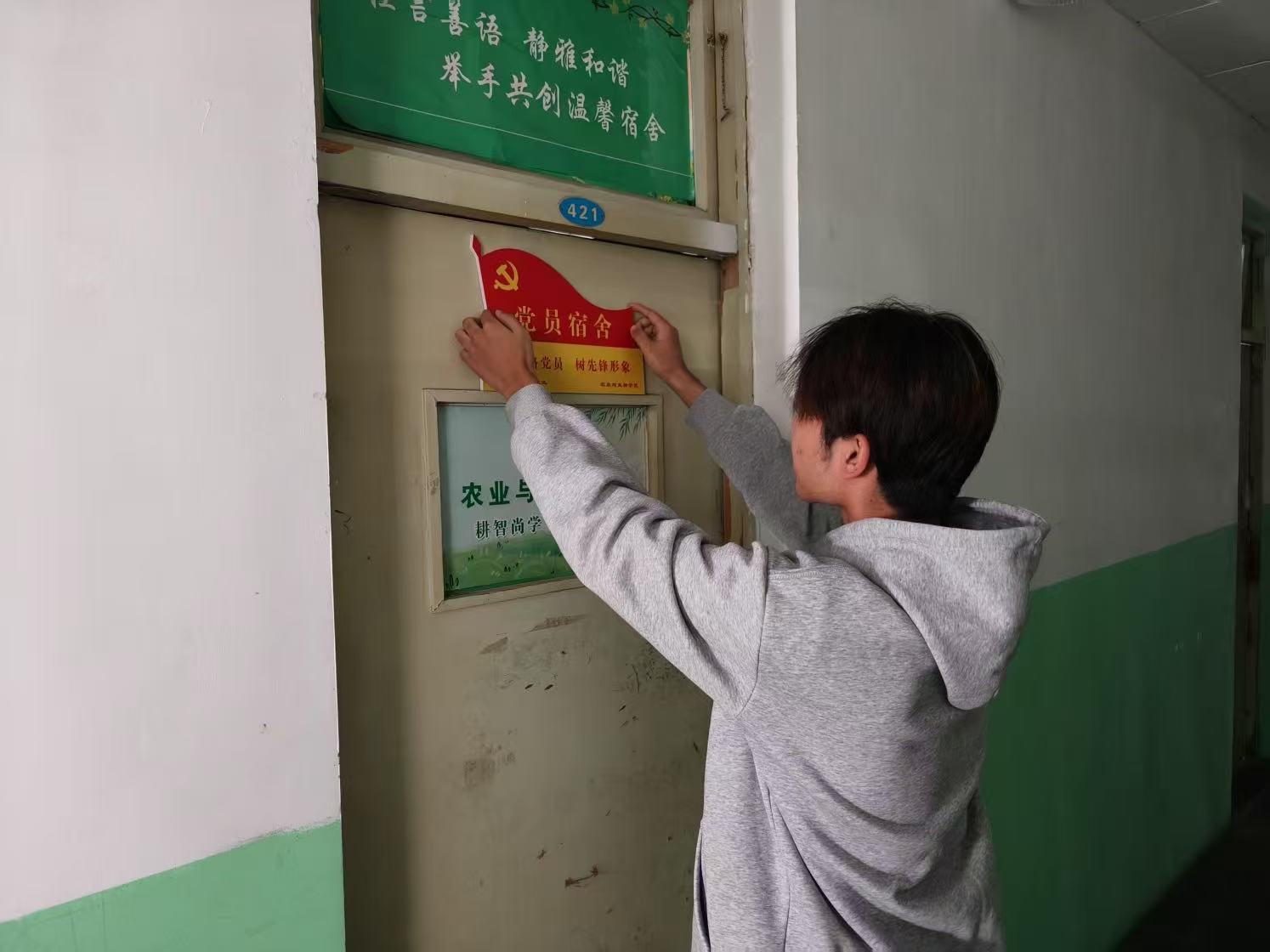 挂牌仪式正式开始,员工党员们庄重地将“党员宿舍〞标识牌悬挂在宿舍门上。这一方小小的牌子,不仅是党员身份的公开宣告,更是对党员在宿舍管理中发挥带头作用的督促。它时刻提醒觉员要自我约束、自我提升,主动承担起维护宿舍秩序、促进宿舍和谐的责任。