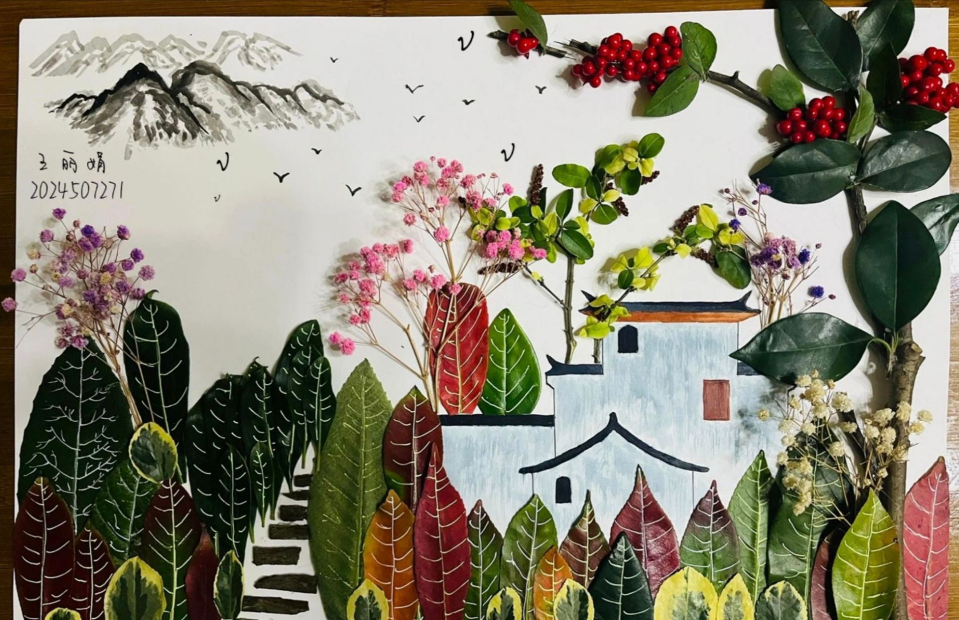 活动过程中,同学们热情高涨。他们自由挑选形态各异的树叶,充分发挥天马行空的想象力,将一片片普通的树叶变成了栩栩如生的动物、如诗如画的风景、生动鲜活的人物等精美图案。最终呈现的作品令人眼前一亮,题材广泛、风格多样。有的作品以生动的自然景象为主题,用树叶拼贴出飞鸟掠过林间的诗意场景;有的作品则聚焦人文意象,通过巧妙的组合,展现出人物肖像、传统建筑等造型,每一幅作品都彰显着同学们对美的独特理解与诠释。活动结束后,评委们从众多投稿中精心筛选出一批主题鲜明、创意独特的优秀作品,后续将通过公司公众号进行集中展示,让更多人感受这场自然与艺术交织的创意之美。这场以自然为媒、以创意为笔的活动,不仅让大家感受到艺术创作的乐趣,更在合作与互动中深化了对美的感知,许多同学表示,希望未来能参与更多此类将自然与艺术结合的特色活动,在校园生活中发现更多美好与惊喜。