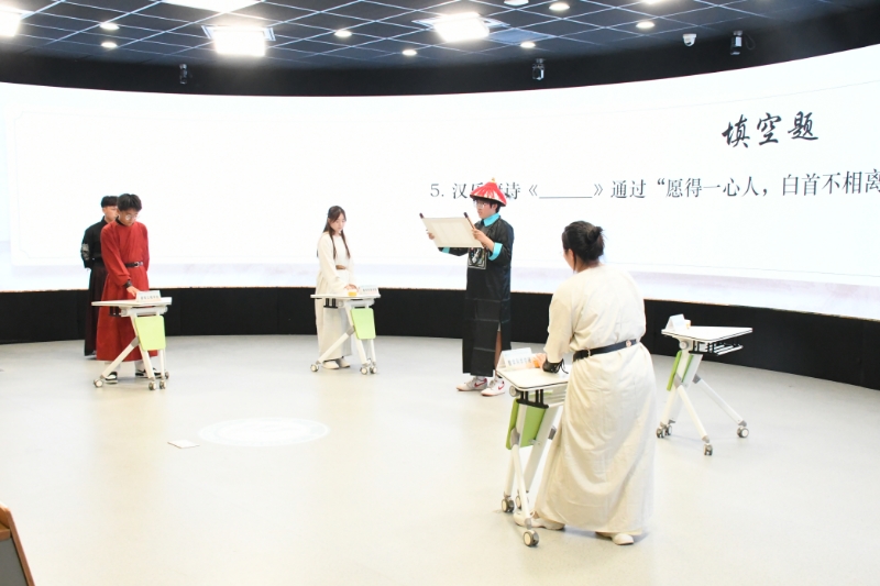 5月23日至25日,知识竞赛通过易班平台开展,设置多元题型,内容涵盖诗词歌赋、传统节日、非遗技艺等文化领域,系统考察同学们对工匠精神、礼乐文明、典籍智慧等传统文化的储备与理解能力,实现知识竞答与文化浸润的双重效果。同学们在沉浸式答题中既检验了传统文化知识储备,也充分感受国风文化的独特魅力。经多轮筛选与严格评判,12名来自不同公司的代表选手,凭借扎实学识与出色应变能力脱颖而出,晋级会试与殿试。