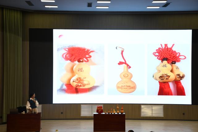 为增强员工的直观体验,赵燕还展示了葫芦雕刻技艺与工艺品制作流程,鼓励员工动手实践,在体验中领悟文化精髓。互动环节中,她围绕“葫芦如何演变为吉祥符号”“雕刻图案的象征体系”等问题与在场同学深入交流,现场气氛热烈,进一步激发了员工对传统文化的探索兴趣。