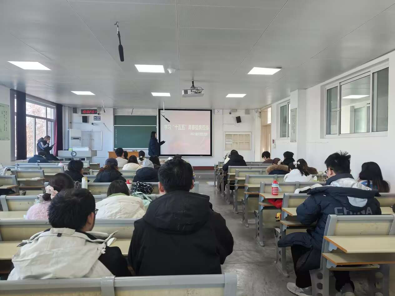 活动在专题宣讲中拉开帷幕。各班级团支部书记系统阐述了“十五五”规划的时代背景、核心要义与实践要求,聚焦科技创新、高质量发展、乡村振兴、生态保护等重点领域进行深入解读。宣讲紧密结合青年特质,着重分析了规划实施对青年人才的需求导向,鲜明指出青年一代不仅是国家战略的见证者与受益者,更应成为积极的参与者与建设者。通过原文诵读、要点问答等互动形式,有效提升了团员青年对规划内涵的理解与认同,进一步筑牢了听党话、跟党走的思想根基。