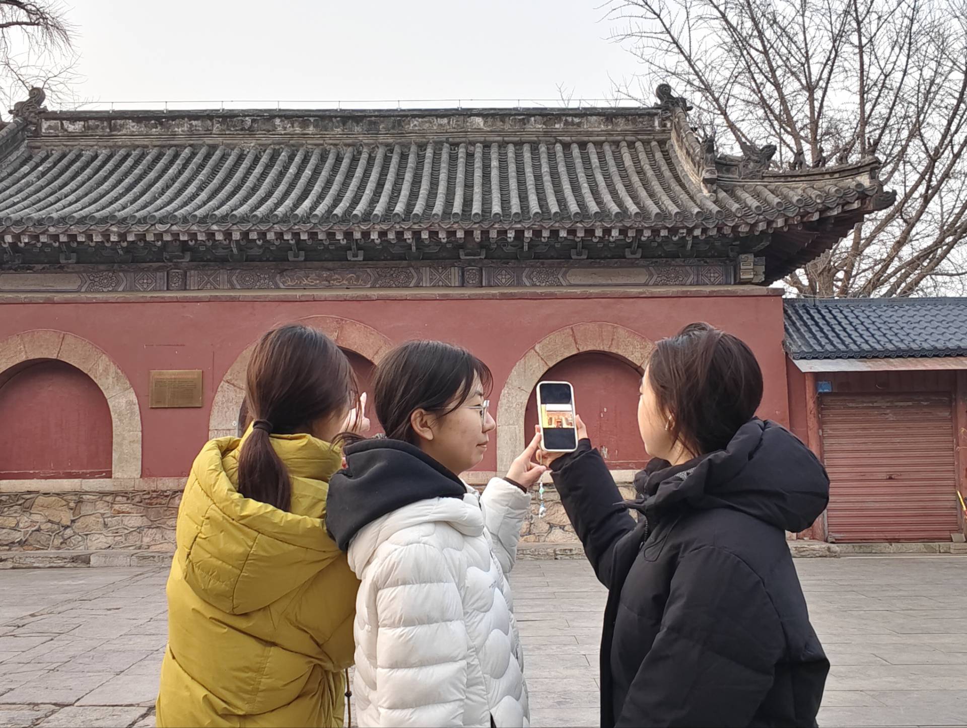 活动过程中,团队成员前往聊城市东昌府区,对多处具有代表性的古建筑进行实地走访与考察。队员们通过拍摄记录古建筑现状,并结合历史影像资料进行对比分析,展开交流与探讨。通过观察与讨论,队员们认识到,东昌府区的古建筑在保护与活化利用中实现了有机更新,已成为承载历史记忆与时代精神的重要地标。为进一步深化理解,队员们携带古今对照图片,走访当地长者,聆听他们讲述古建筑的历史变迁与背后的故事。活动后期,团队对采集的影像资料进行分类整理,并附以文字说明,系统呈现东昌府区在历史建筑保护与红色文化资源传承方面的实践成果。