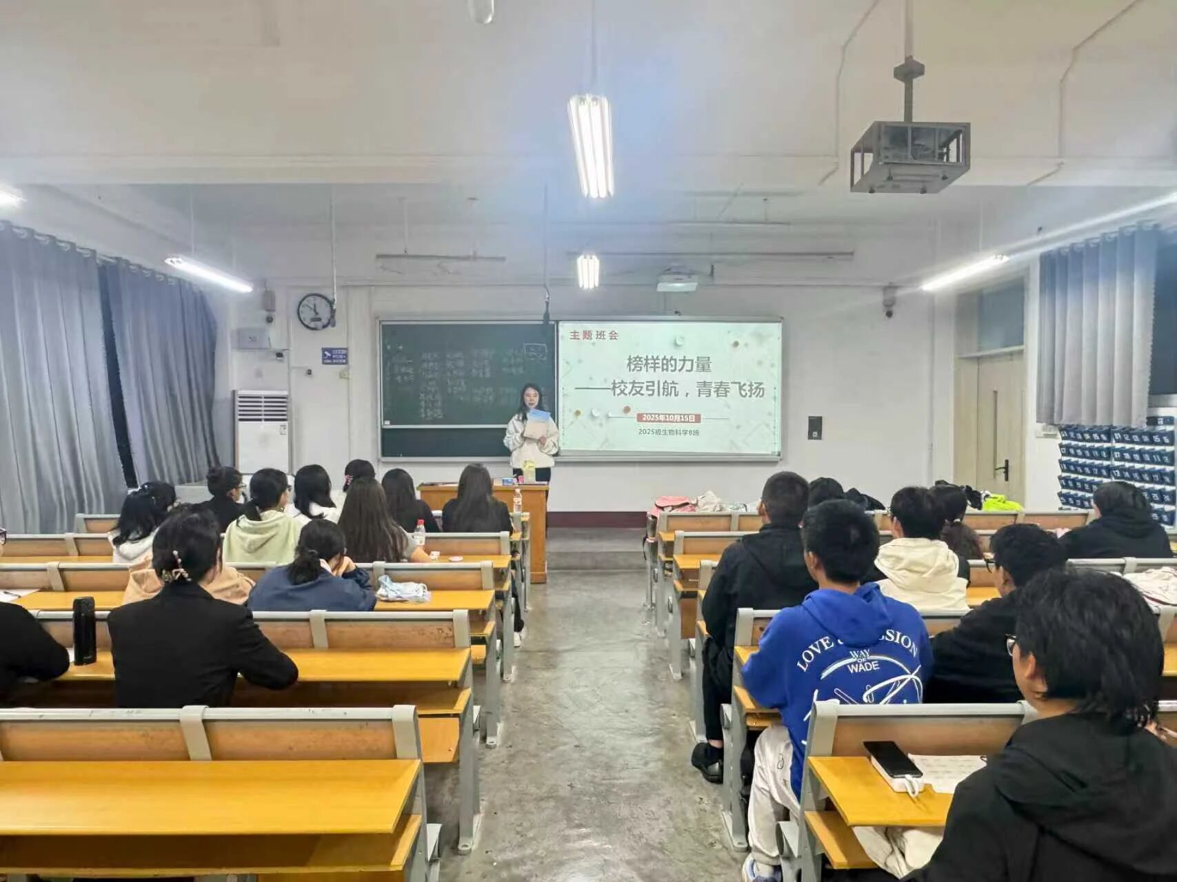 在互动答疑环节,同学们积极踊跃发言,就专业学习、生涯规划以及个人发展等方面具体困惑踊跃提问。分享者们耐心倾听,并结合自身经验给予了耐心细致的解答。同学们掌声回应,现场气氛热烈。