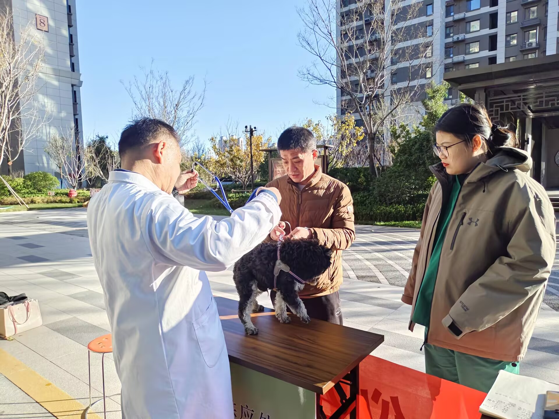 本次活动邀请到聊城心仪动物医院的李学善经理坐诊,以“关爱宠物健康,提供专业服务”为主题,进行现场义诊和宠物健康知识宣传。活动伊始,工作人员为宠物们提供了健康检查服务,每一只宠物都进行了细致入微的健康检查,让居民们了解宠物的身体健康状况。