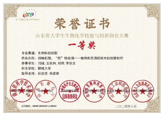 公司刘雨同学在山东省老员工生物化学技能与创新创业大赛中荣获一等奖,对该获奖同学予以祝贺表彰。