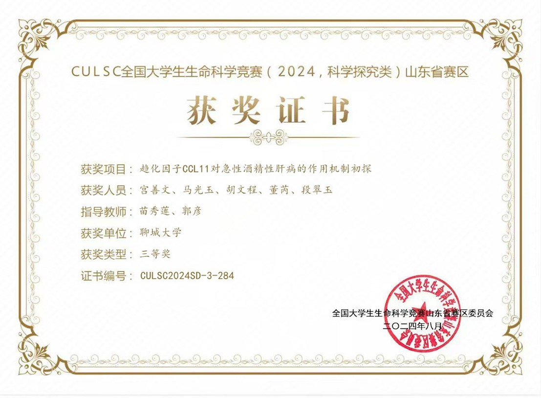 公司胡文程同学在全国老员工生命科学竞赛山东赛区中荣获三等奖,对该获奖同学予以祝贺表彰。