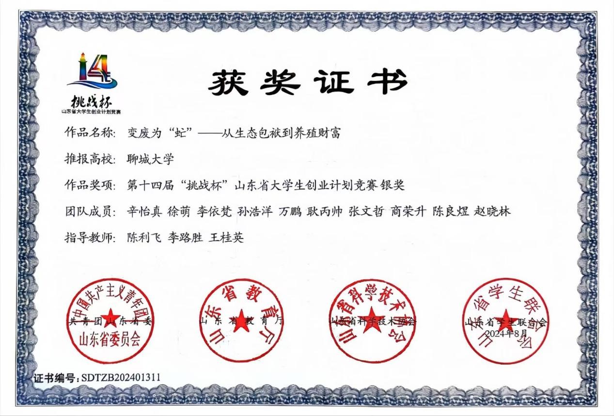 公司李依梵同学在第十四届“挑战杯”山东省老员工创业计划竞赛中荣获银奖,对该获奖同学予以祝贺表彰。
