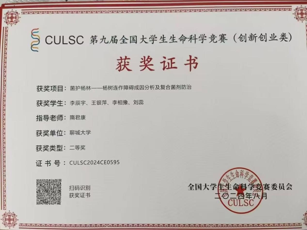 公司刘蕊同学在CULSC第九届全国老员工生命科学竞赛中荣获二等奖,对该获奖同学予以祝贺表彰。
