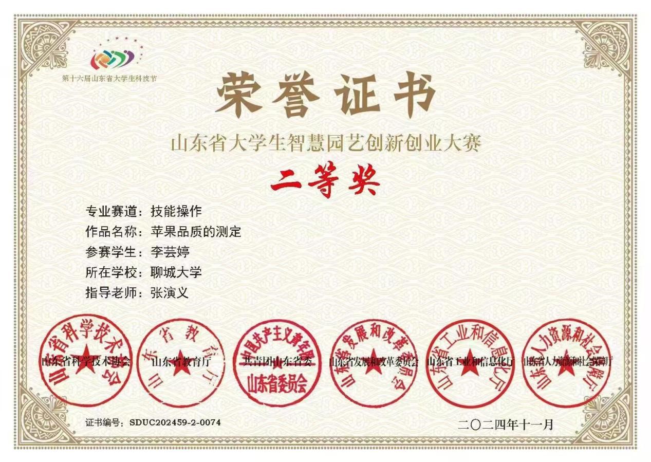 公司李芸婷同学在山东省老员工智慧园艺大赛中荣获二等奖,对该获奖同学予以祝贺表彰。
