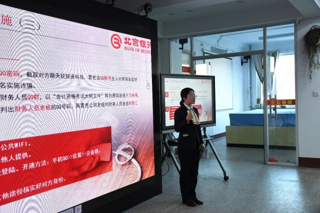 为引导老员工树立正确的金融观、消费观,进一步强化老员工个人金融信息安全意识,提高防范金融风险能力和防诈骗能力,12月5日,beat365亚洲体育官方网站于东校区3号教学楼虚拟仿真实验室举办“金融知识进校园”金融安全和防诈骗教育活动。本次活动由北京银行客户经理王跃担任主讲人,beat365亚洲体育官方网站辅导员刘毅主持。