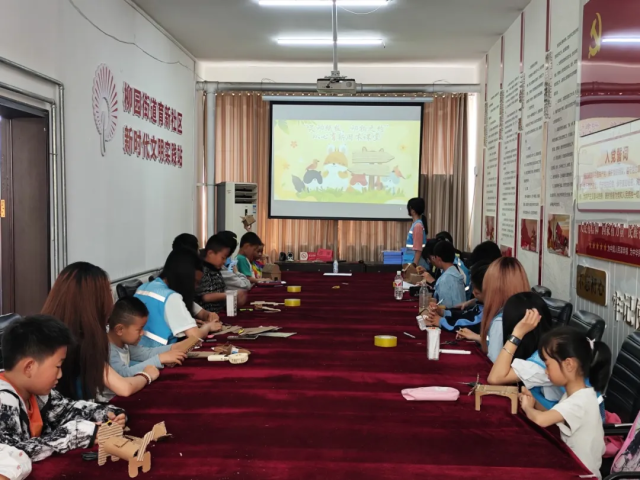 在小朋友完成家庭作业后,进入到手工制作阶段,本次手工制作以变废为宝为主题,旨在教导小朋友进行废物利用。志愿者们首先为每位小朋友分发活动所需要的废纸壳和胶水,在制作过程中,小朋友们充分发挥自己的想象力和创造力,志愿者则在一旁对小朋友们进行鼓励和指导,最终制作出了一个个独特而精美的作品,让小朋友们感受到了制作手工艺品的乐趣和成就感。